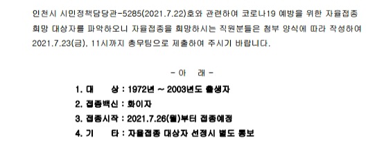 인천시에서 하는거고 신청하는대상자가 73년생~2002년생인가 그렇던데 너도나도 신청할거라 대상자 되기 힘들텐데
