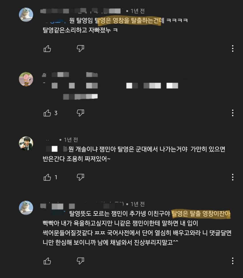탈영은 탈출 영수인데 ㅉㅉ