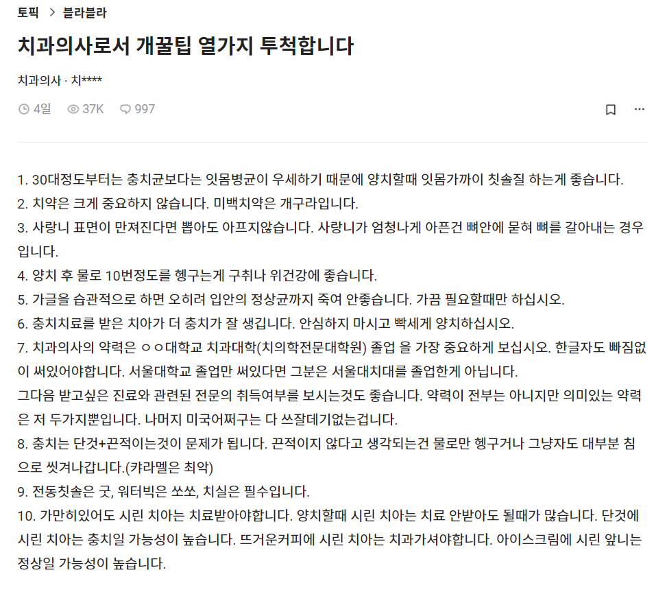 근데 시벌 나 하루에 이빨 3번 이상 닦고 가글도 자주 하는데 왜 썩는건지 모르겠다