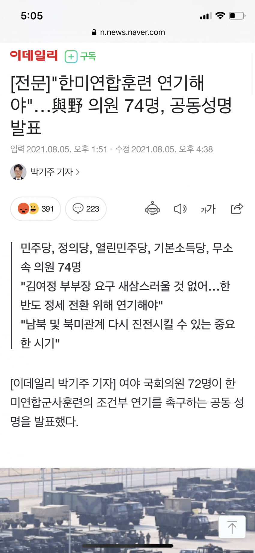 비핵화같은 소리하네 미쳤나 비핵화는 미국이 나서도 불가능한데 뭔 불가능한 비핵화 핑계대면서 한미연합훈련 하지 말자고? 애라이 빨갱이들 아직 얘네 지지하는 애들이 있으면 김정은 개새끼부터 외치고 시작해라