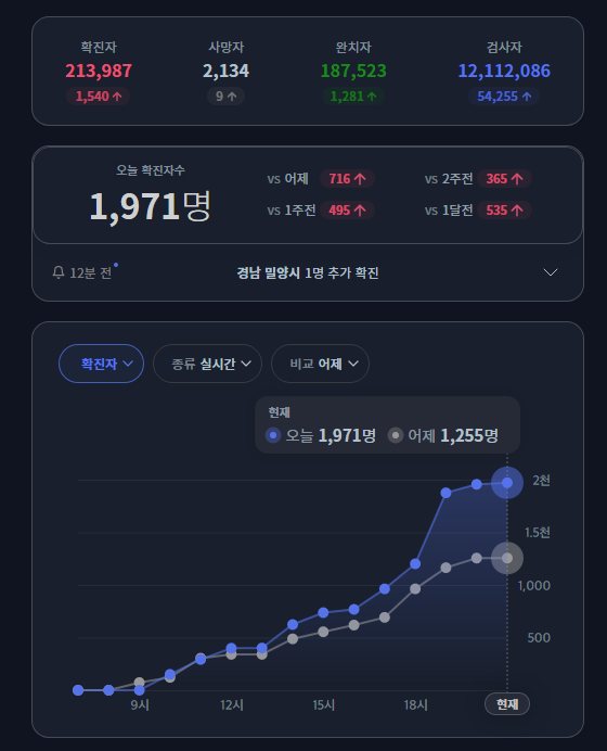 뭐야 어제 그제 1500명 대 아니였나? 갑자기?