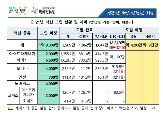 질병청 보도 자료인데 8월 9일까지 3509만개나 도입완료 했다는데