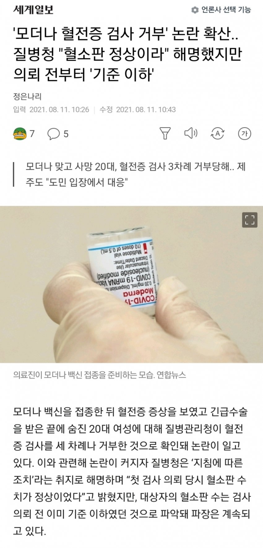 검사의뢰기준에 모두 부합했는데 오로지 백신종류가 아니라고 3번이나 거부? ㄷㄷㄷ 게다가 이미 사망하고 난 뒤라 백신때문이라는 인과관계도 밝히기 어렵게 됐네
