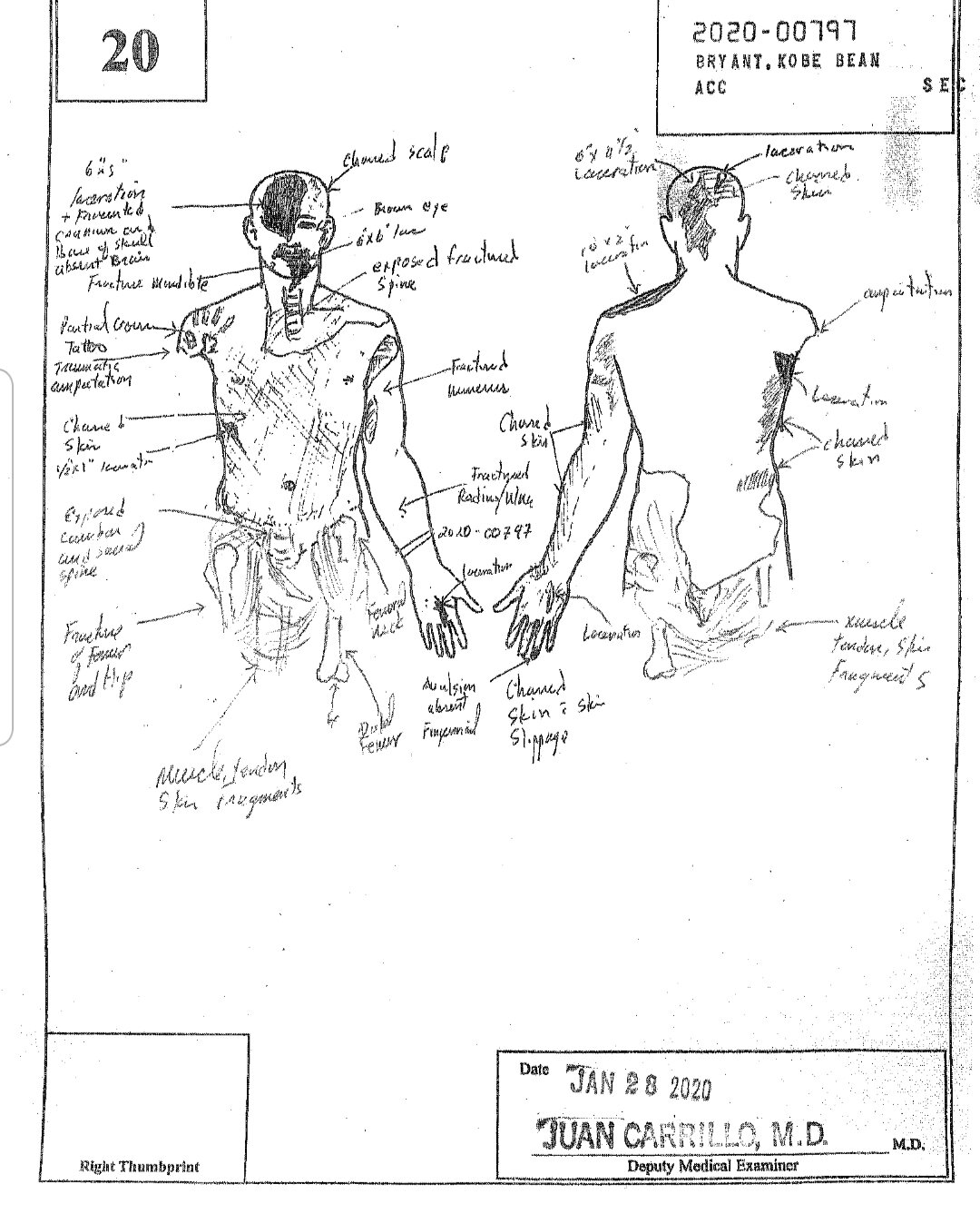 - 골절된 척추가 드러나 있었음