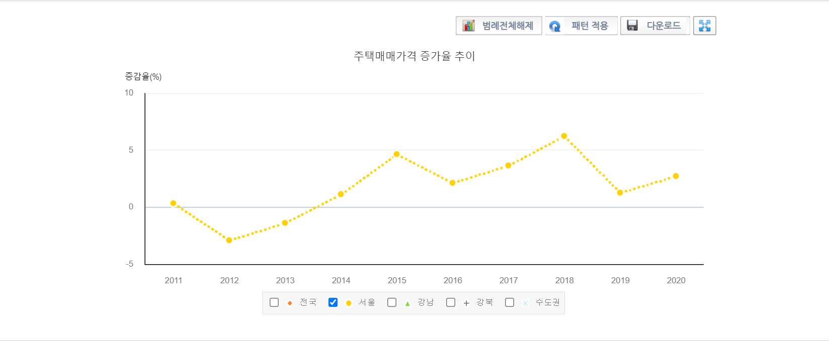 일단 서울 주택 가격 상승률이면 한국 통계는 이거야.