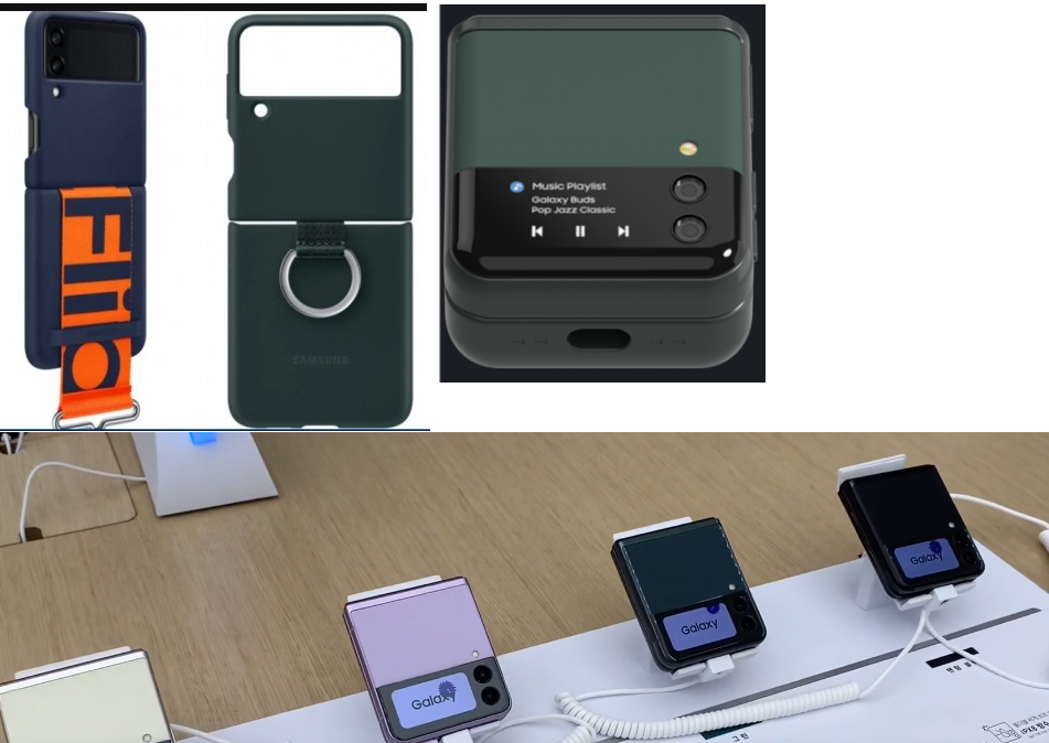 z플립 케이스 네이비, z플립 케이스 녹색, 갤럭시버즈2 그린 케이스 아래는 플립 실물