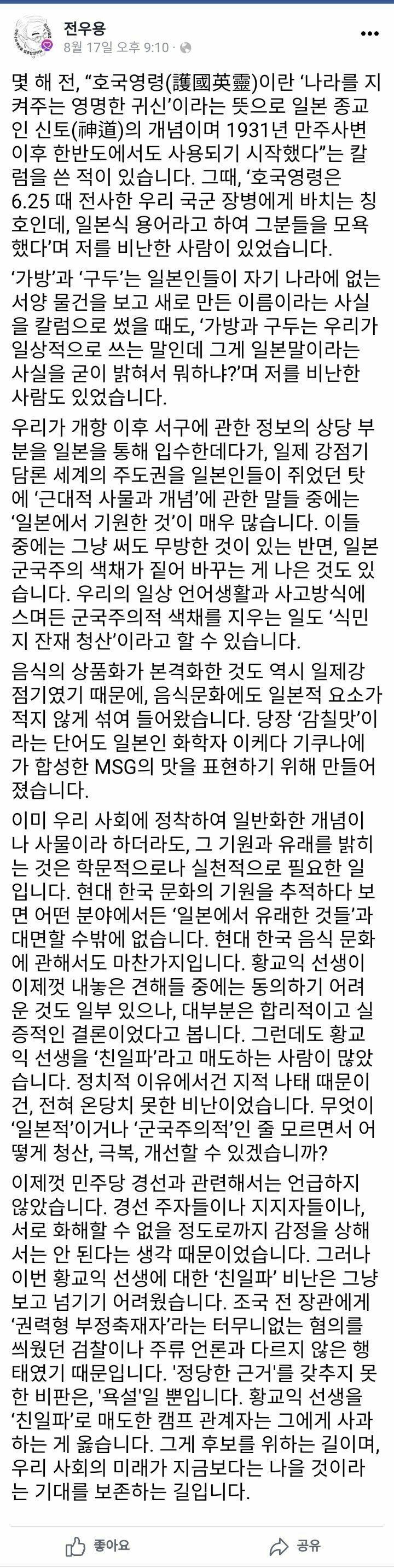 친일파 까는 사람이 이걸 쉴드치네