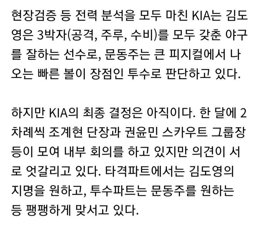 차순위 지명권은 한화한테 있어서 기아가 누굴 선택하든 남은 한명 바로 데려갈 예정.