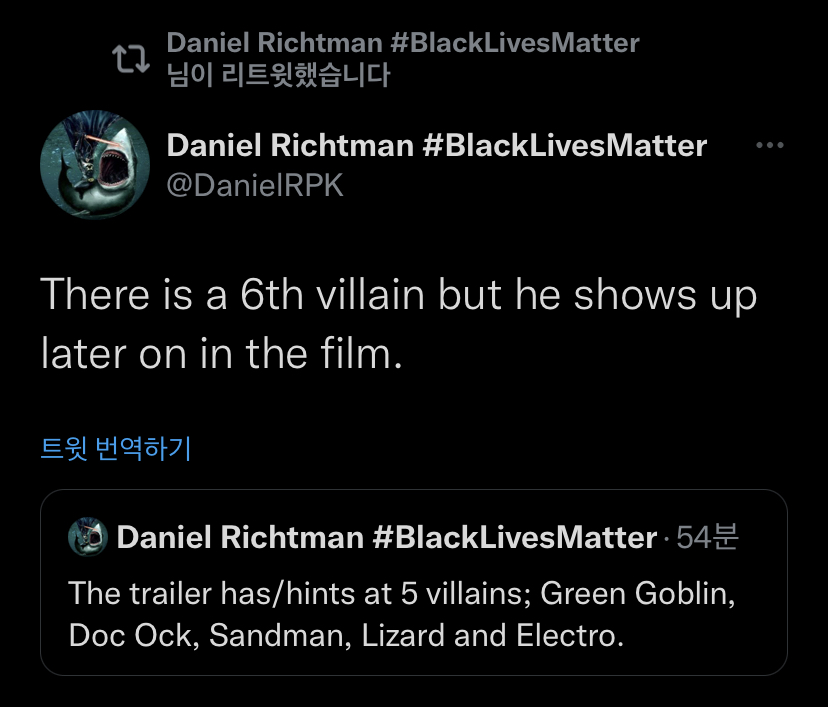 다니엘 rpk - 이번 예고편에는 그린고블린, 닥터 옥토퍼스, 샌드맨, 리자드, 일렉트로가 등장하였고 6번째 빌런은 영화 본편에서 등장할 것. 이 중 메인 빌런은 그린 고블린.