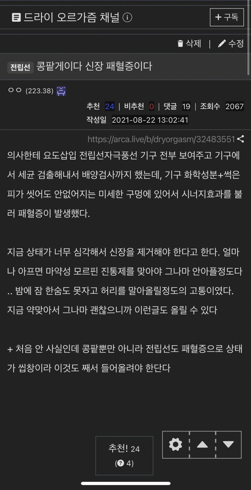 아... 요도삽관으로 전립선까지 자극할 정도면 얼마나 넣은거야...
