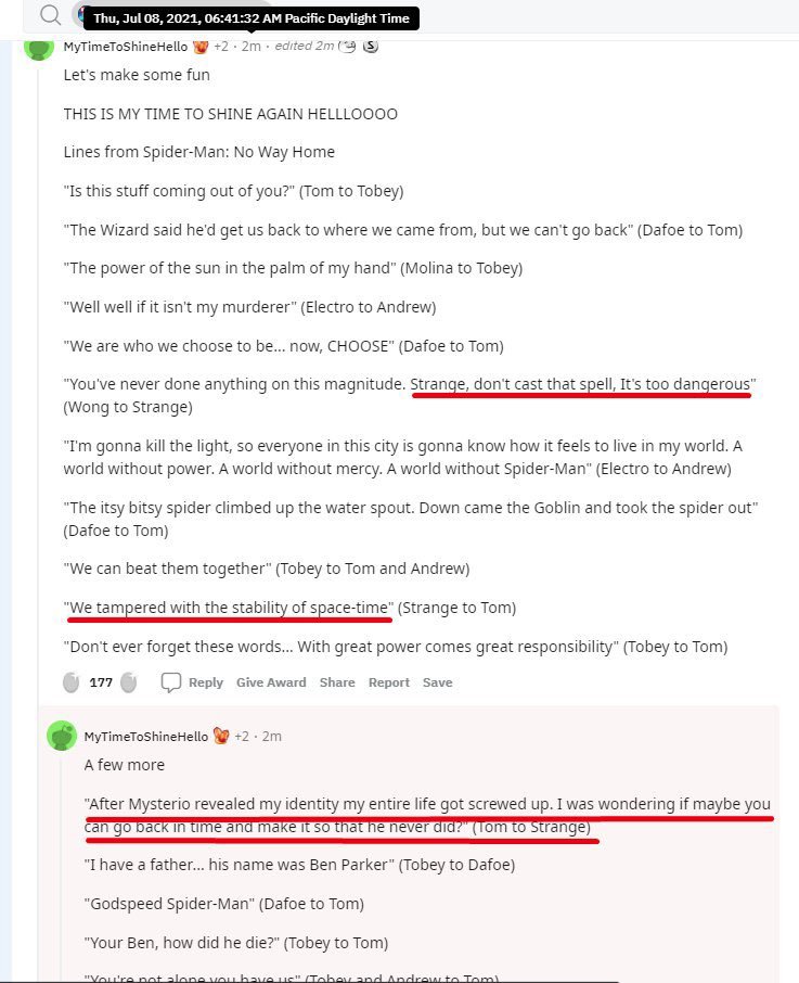 "Don't ever forget these words. . . with great power comes great responsibility" (Tobey to Tom)
