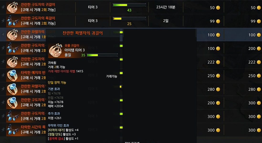 2. 페온을 어빌리티 스톤 사는데 소모했다보니 각인 악세를 사고 싶어도 사질 못하고 존나 비쌈