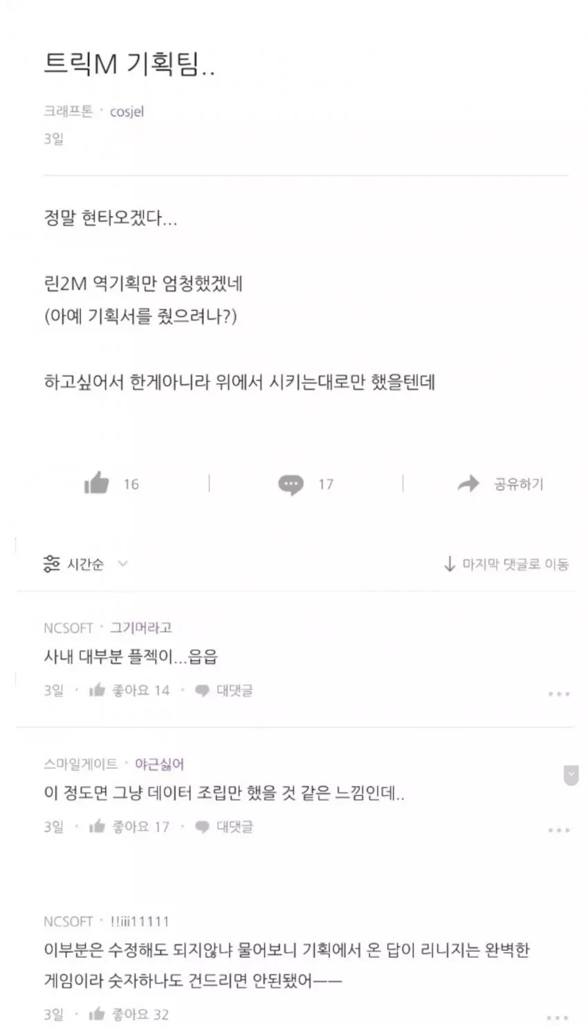 저래도 할놈들이 남아서 돈버는 엔씨를 보면 아직 머렀다........