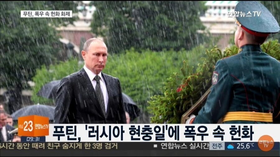 푸틴 : 전사한 군인들 또한 비를 맞으며 전쟁을 치뤘다. 난 설탕이 아니다, 비 맞는다고 녹지 않는다.