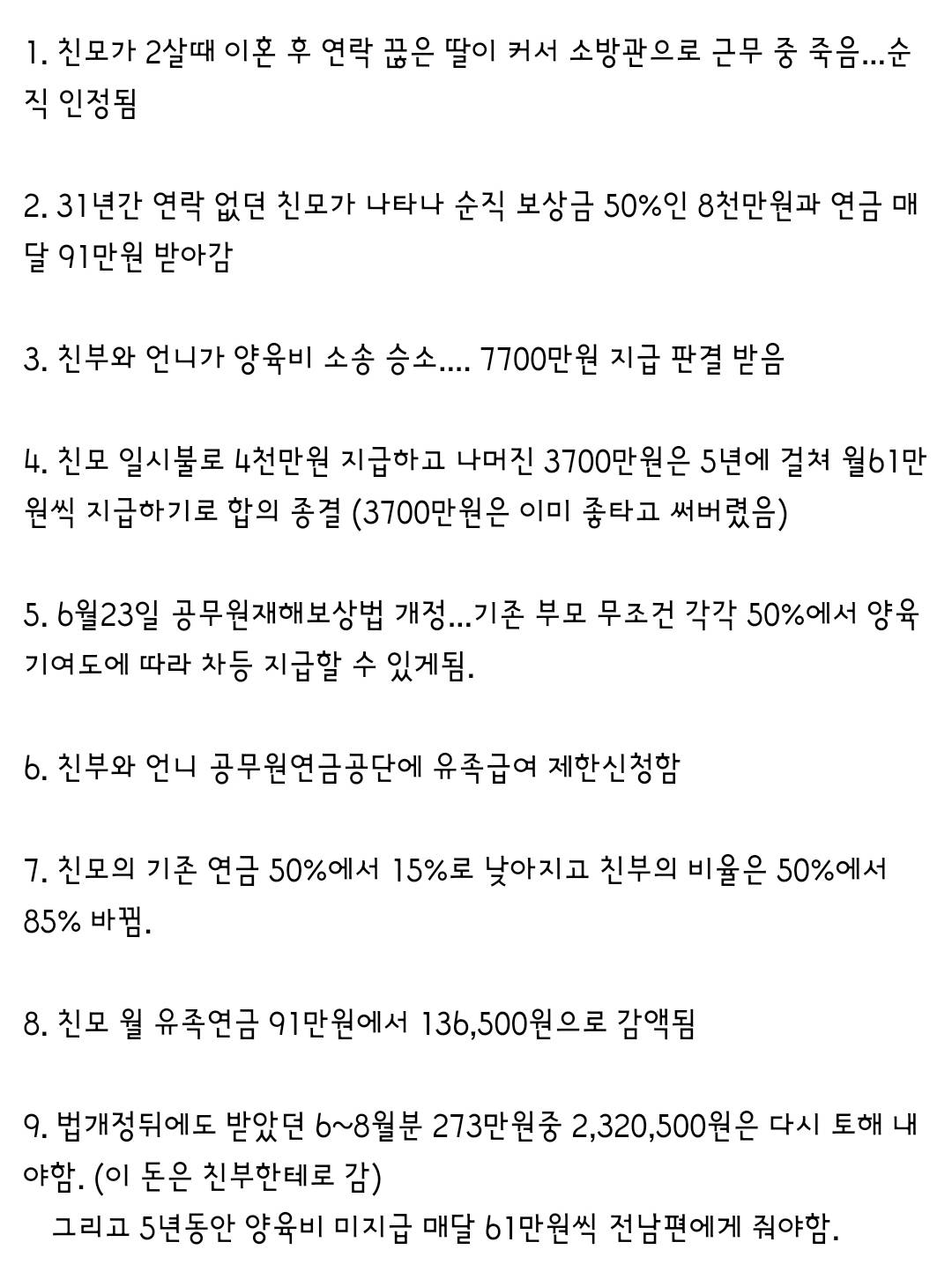 그러고보니 구하라법도 친모 아니냐? 세월호 유족보상때 키우지도않고 타먹은쪽도 친모쪽 아니었음? 통상 이혼하면 자식 양육을 엄마쪽이 하고, 아빠는 연끊는 경우가 반대 경우보다 많기 때문에 이런 일이 발생할 모수는 "자식버린 엄마"쪽보다 "자식버린 아빠"쪽이 훨씬 많을텐데 왜 자식버린 아빠가 뒤늦게 보상타먹는단 얘긴 잘 없고 자식버린 엄마얘기만 있냐