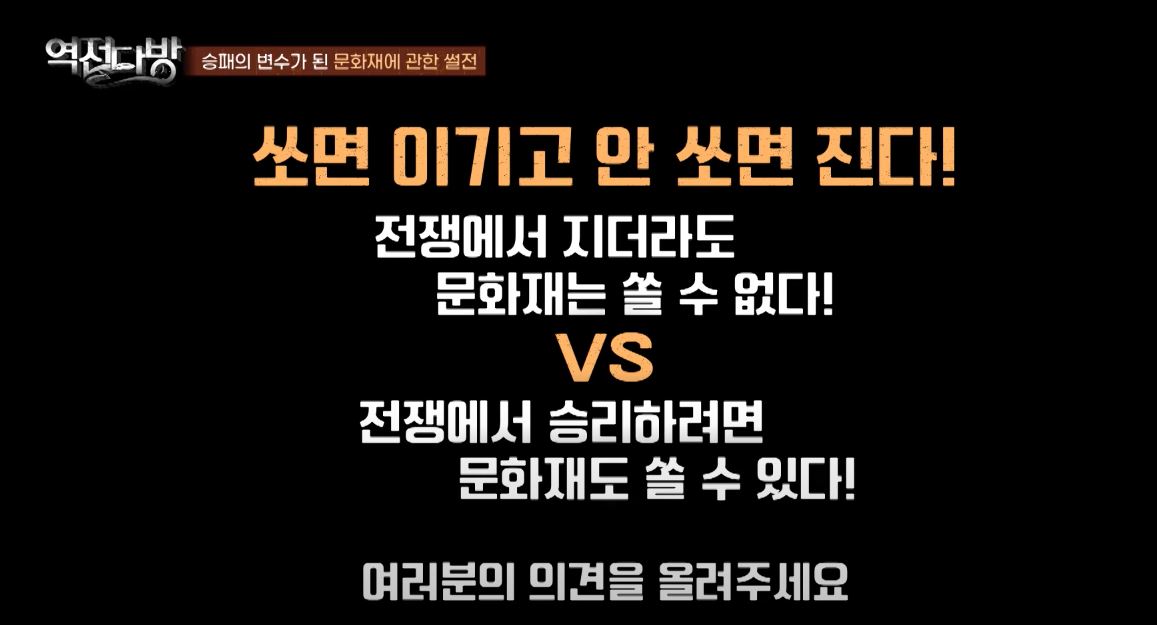 이기고 봐야한다는데 동감 안쏘도 졌는데 문화재 역탈당하거나 이긴놈이 부시고 가면약탈 그야말로 존망 아닌가