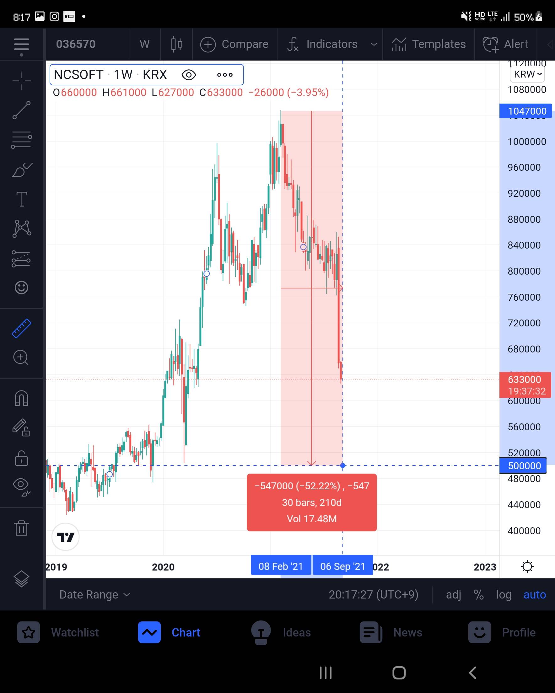 비슷한 비율취하면 50만운까지 볼수있는데