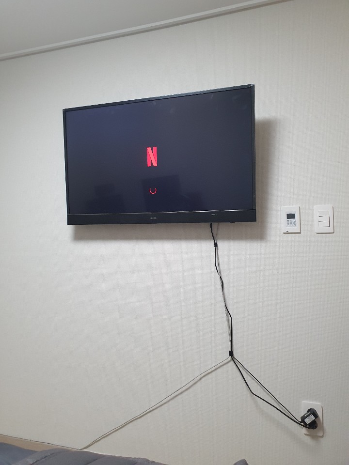 난 티비쪽 벽에 공사할때부터 벽걸이 생각했던지라 선도 벽쪽으로 다 빼냈다 인터넷, 전원, 티비라인 하나도 안보이지롱