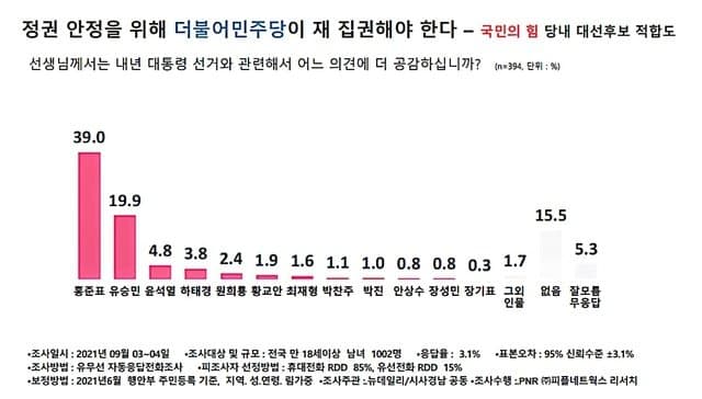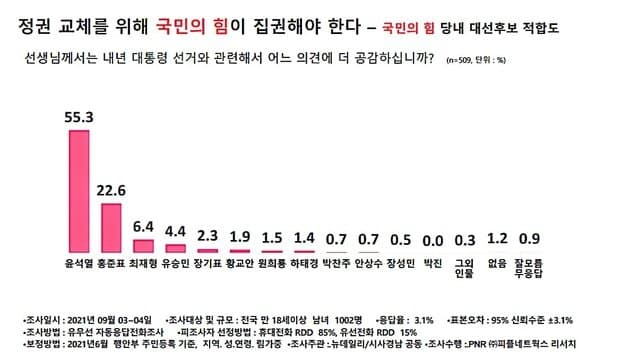 사실 무슨말을 하는건지 잘 이해는 못했지만 요지는 윤이든 홍이든 일단 야당후보되면 저 정권교체를 희망하는 응답자들은 표를 줄것이다 라는 얘길 하고싶은거잖아?