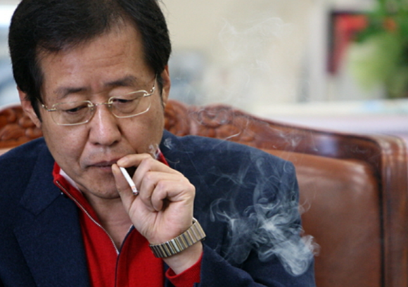 담배 자기 주손으로 피지않나? 홍준표 왼손잡이인가?