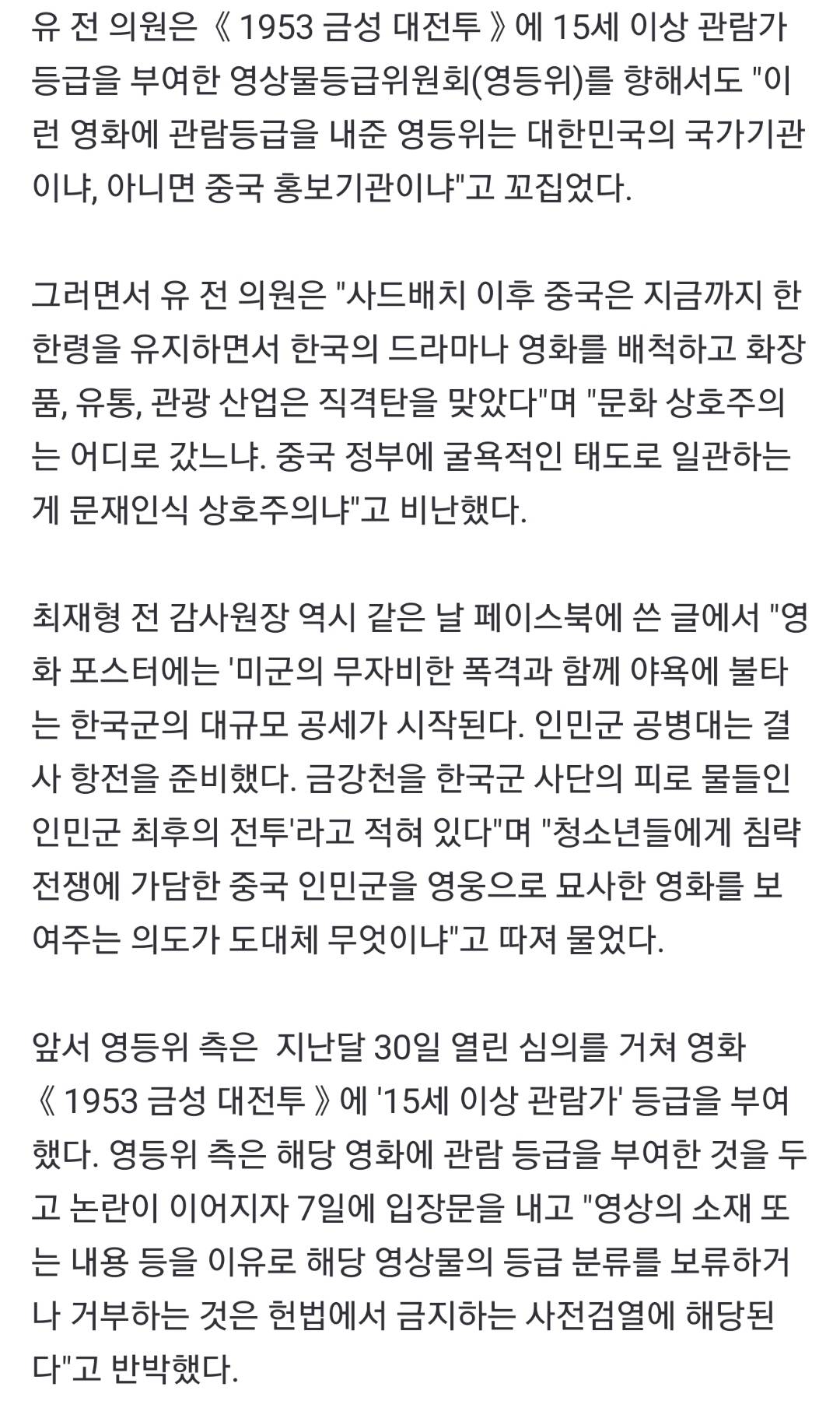 왜 중공 빨갱이 미화 영화를 15세로 풀어준거임?