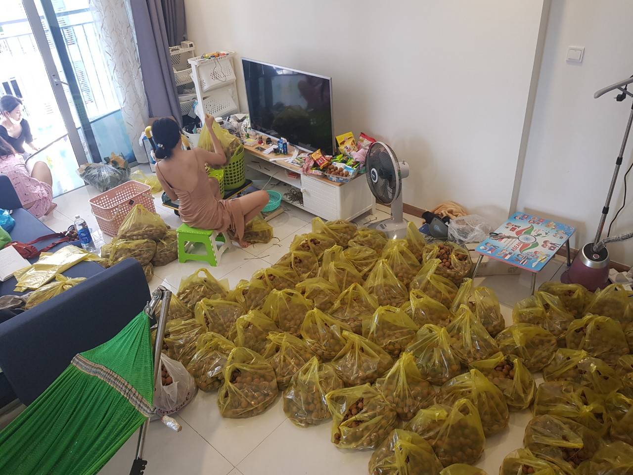 롱안이라는 과일인데 저거 한봉지에 3키로에 5만동, 한국 돈으로 2500원 함.