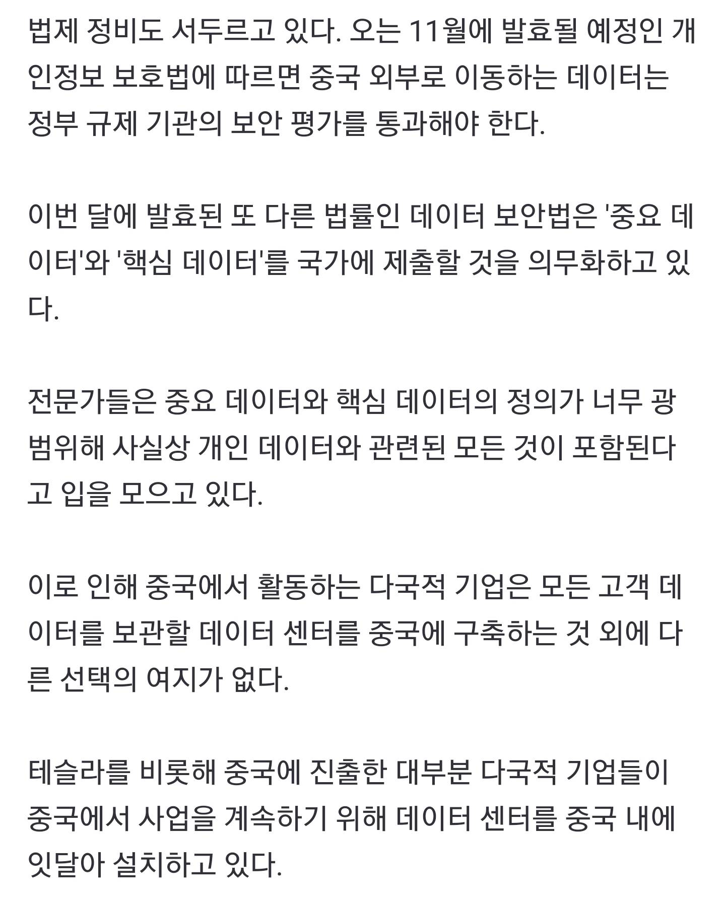 데이터센터를 중국에 짓고 데이터를 중국정부에 줘야 됨