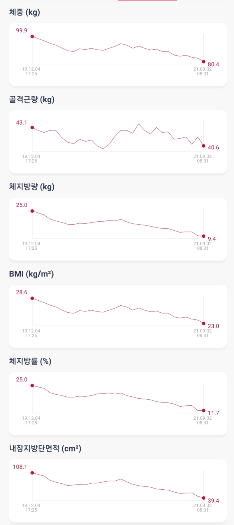 운동 일정은 2019년 12월부터 2021년 3월까지는 주 2~3회, 2021년 3월부터 8월까지 주 4회, 마지막 2달은 매일 한것 같음.