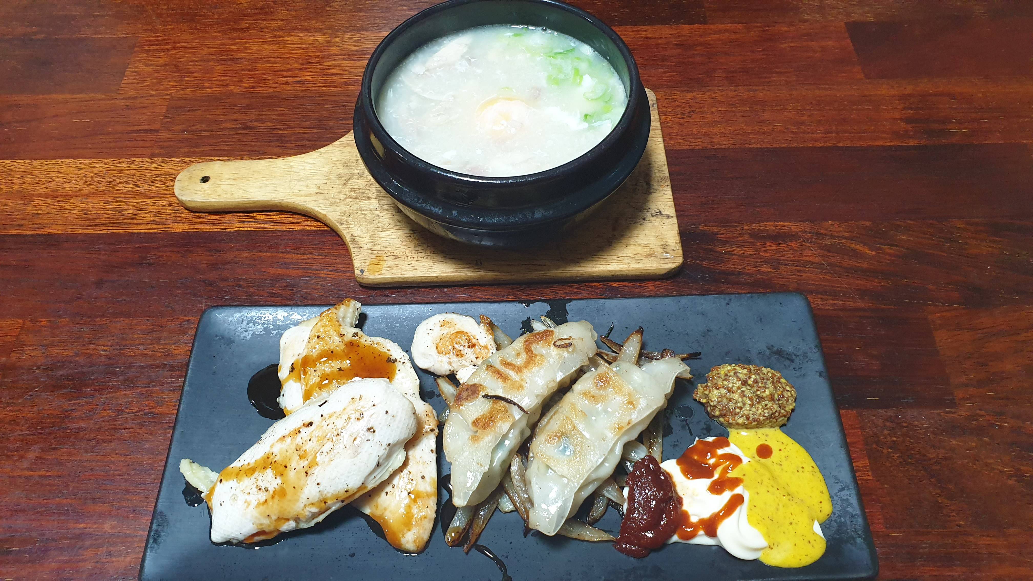 햇반에 떠깔비가 더 비싼거 아냐? 돈 아낄려 죽 끓여 먹을 거에서 가슴살만 ㄸ서 구은거
