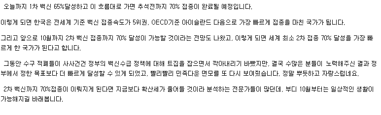 백신이 빨리 수급되었으면 접종률 1위도 하지 않았겟느냐고 이야기 해줫더니