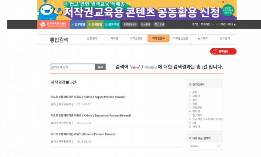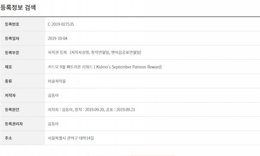 키드모가 저작권 등록하면서 드디어 특정성 성립됨.