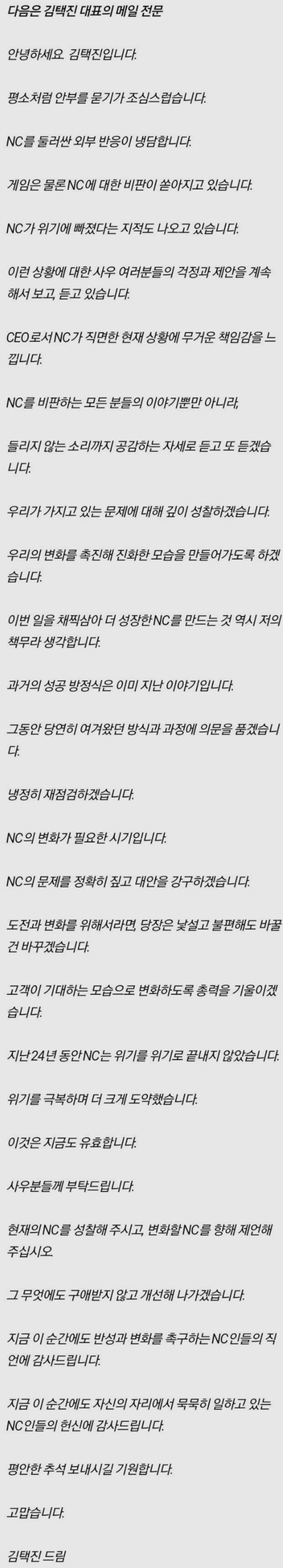 이건 정신차리고 자시고가 아니라 직원 내부적으로 분위기 안좋고 이탈도 발생하니까 케어 차원이지 정신 차리긴 개뿌리