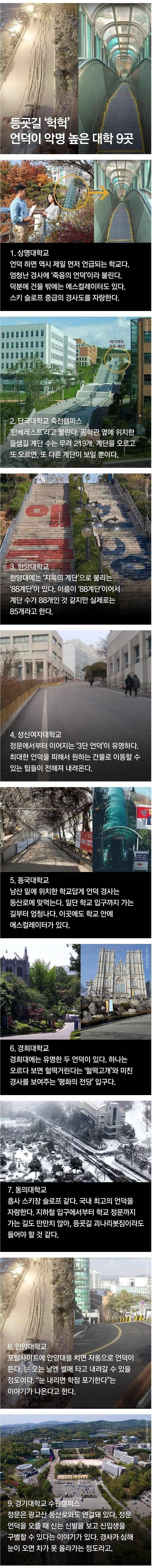 부산대가 그냥 직벽이라며 그리고 중앙대도 장난아님 학교 내부 다니다보면 절벽처럼 보이는 곳 많음