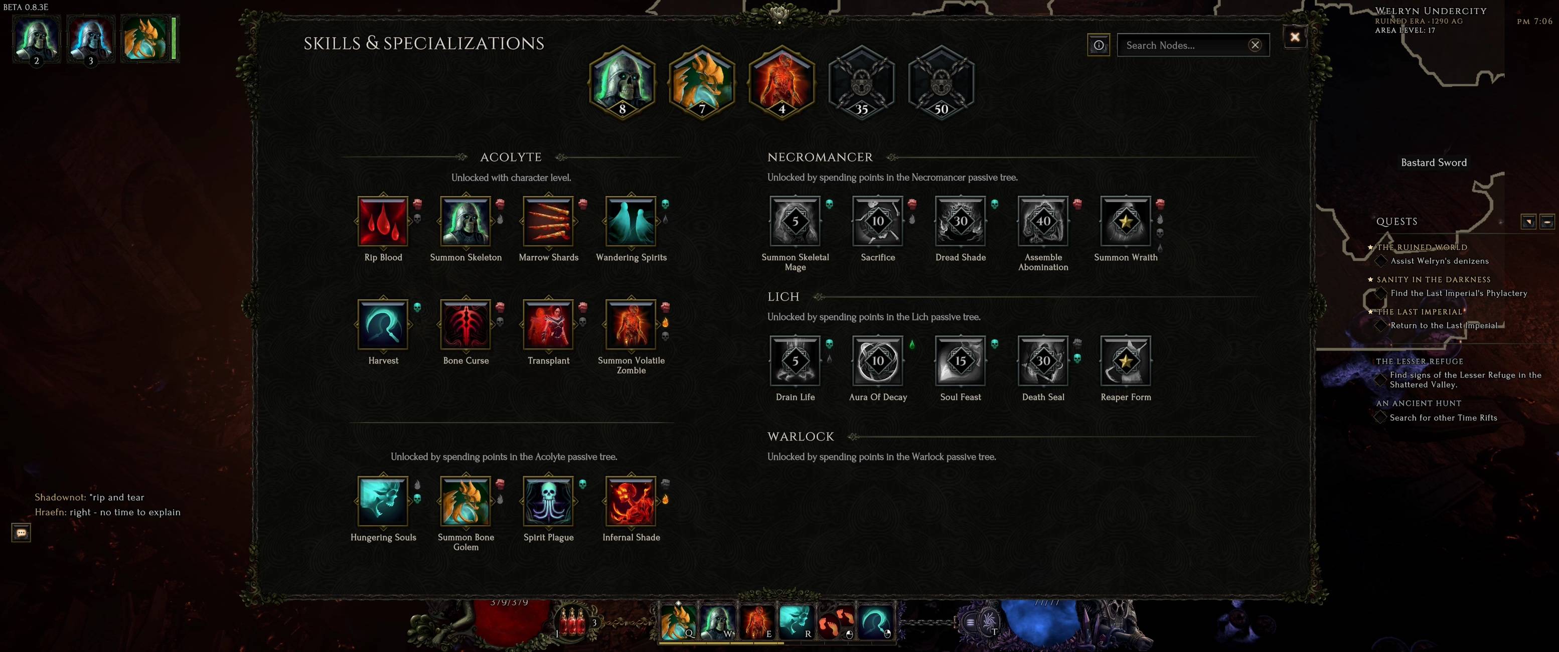 난 네크를 했는데 저 스킬트리가 캐스터나 소환물 이런 트리로 갈리더라