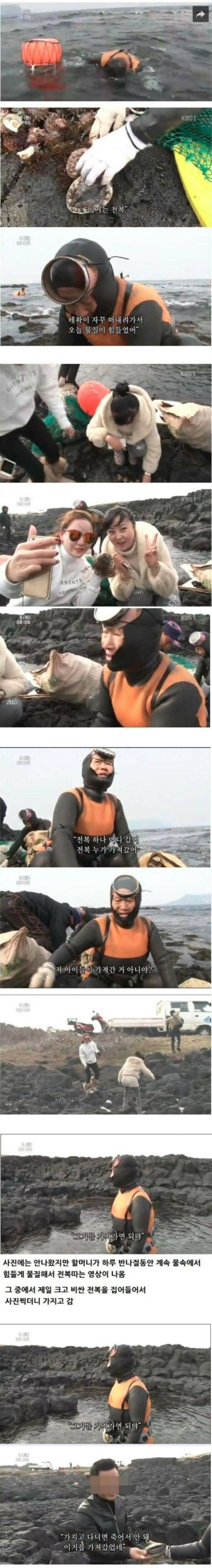 할머니는 전복이 없어진 걸 취재진에 말했고, 이후 취재진이 전복을 찾아 주었다고 한다.