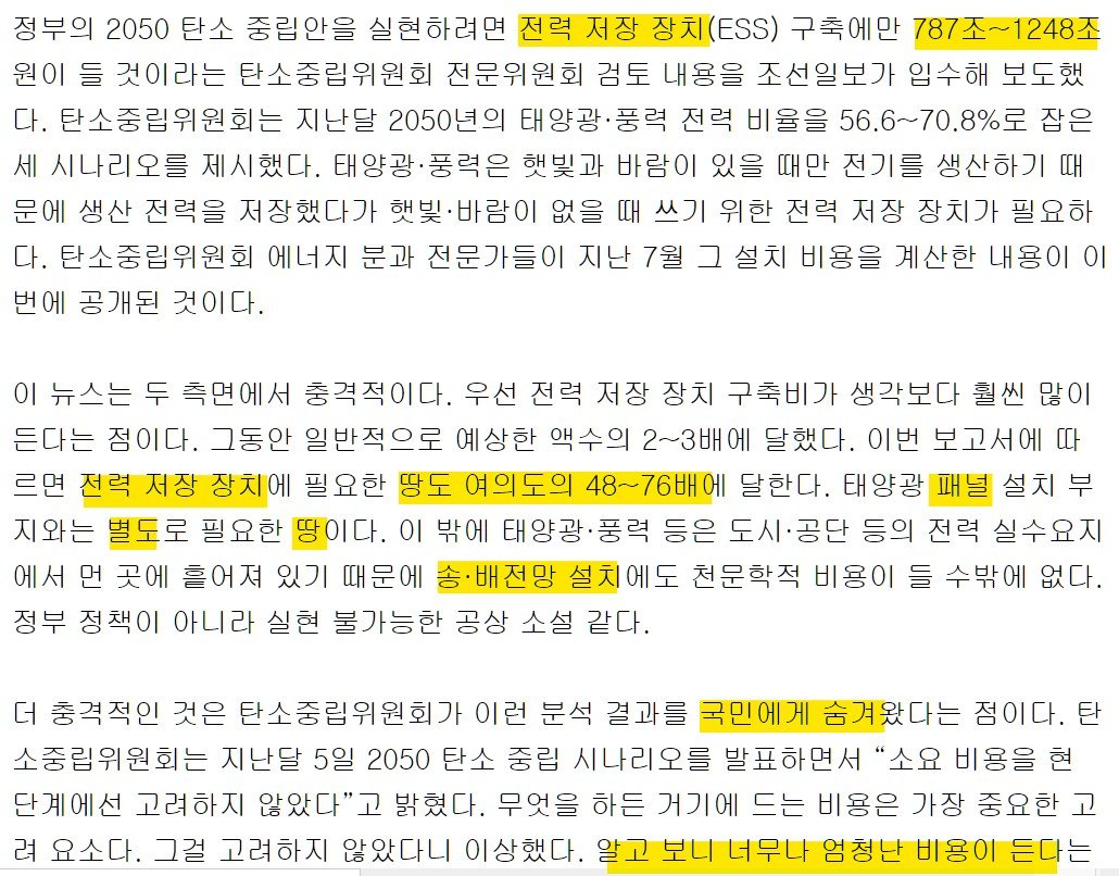 우라늄이랑 탄소배출권 etf 샀따 여튼 본문얘기하자면 개조선 탄소중립안은 상당히 급진적임 근데 그걸 이루려면 저정도 금액이 든다는소리지 애초에 개조선 땅에서 저게 될 수가 없음 전에 내가 궁극적으로는 탈원전은 해야한다는 소리 했었는데 탄소 중립을 이루려면 탈원전은 불가능하다고 봐야될거같음