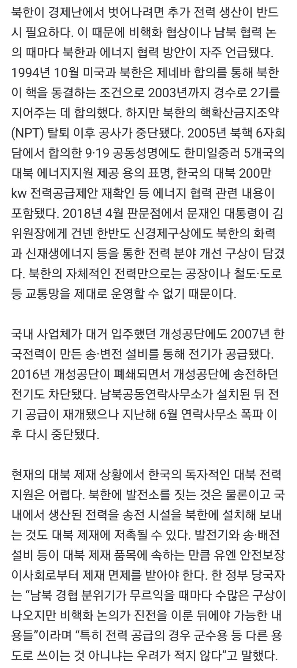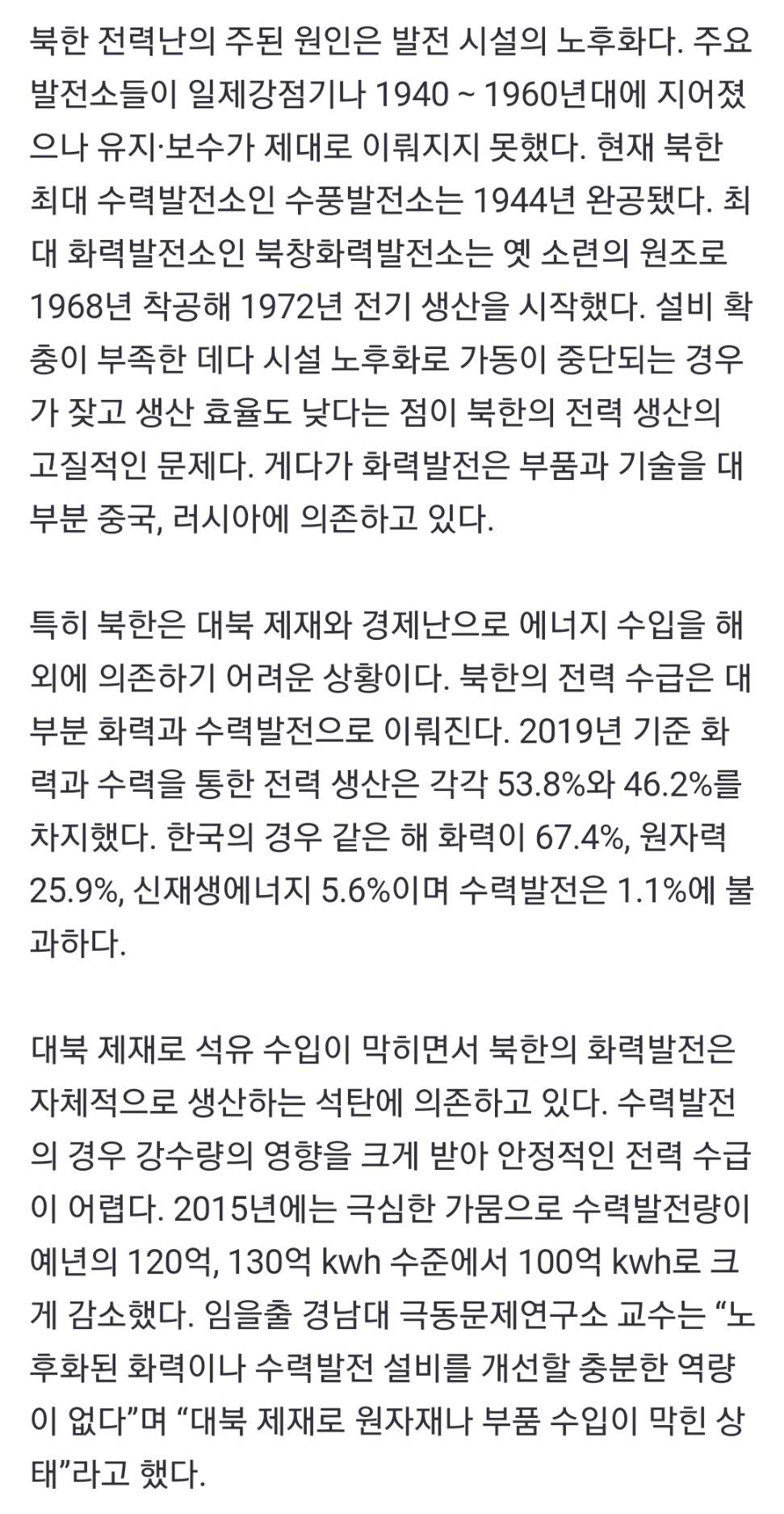 북은 낡은 화력발전에 의존하는데 그걸론 버티기 힘듬