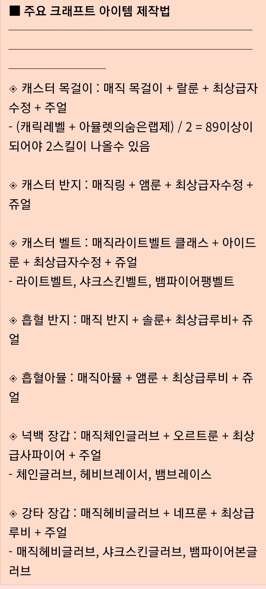 기본적인 템 종류 정리