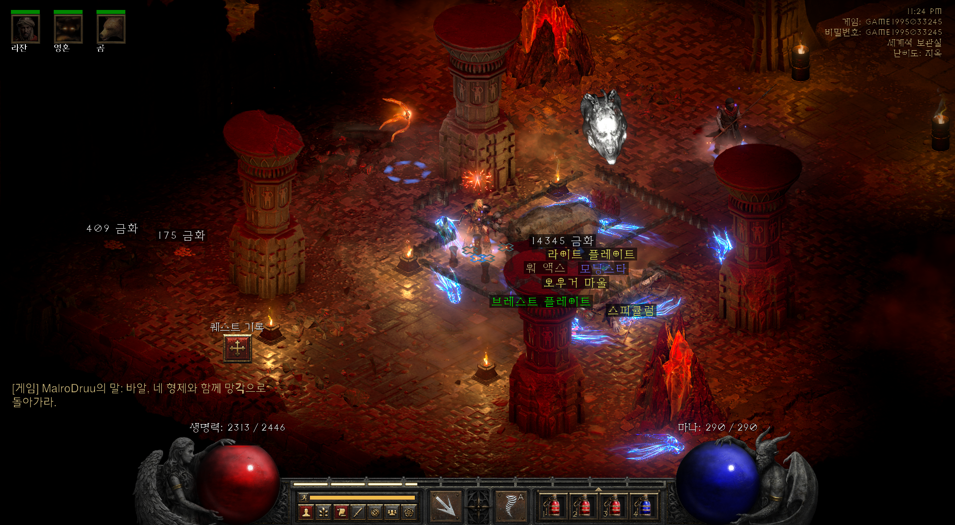 템이 너무 없어서 바알만 30분간 잡음...