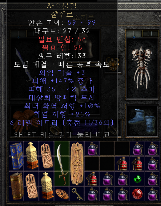 검은 잘 모르겠다만 댐지옵션이 많이 붙어서 렙제치곤 맥댐이 높아보이는데 쓸 사람 있으려나? 아님 상점 팔게