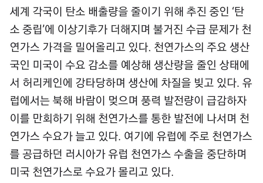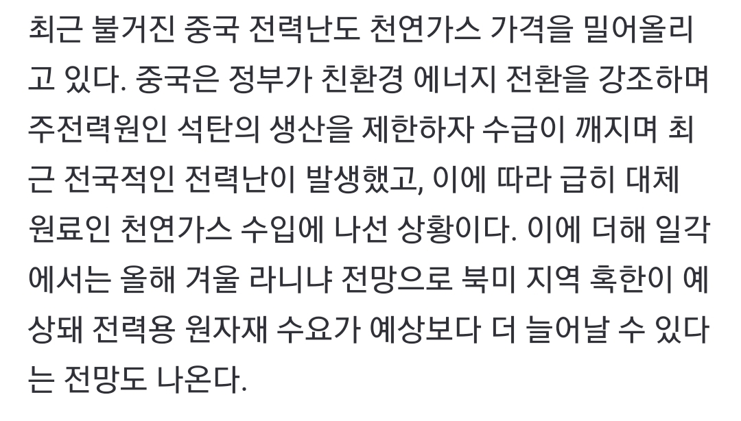 석탄이 모자르자 천연가스라도 급하게 쓸어가는데