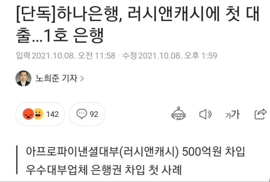 러시앤캐시면 일본내 악명높은 야쿠자기업이잖아 하나은행 대가리가 빨렸나?