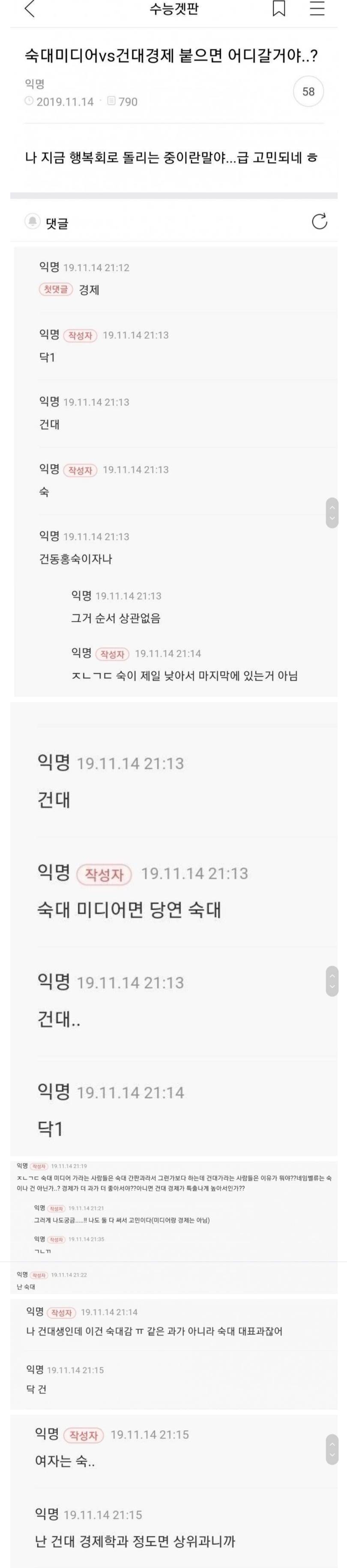 다들 건대 이야기하는데 혼자 아득바득 숙대 외치는 언냐