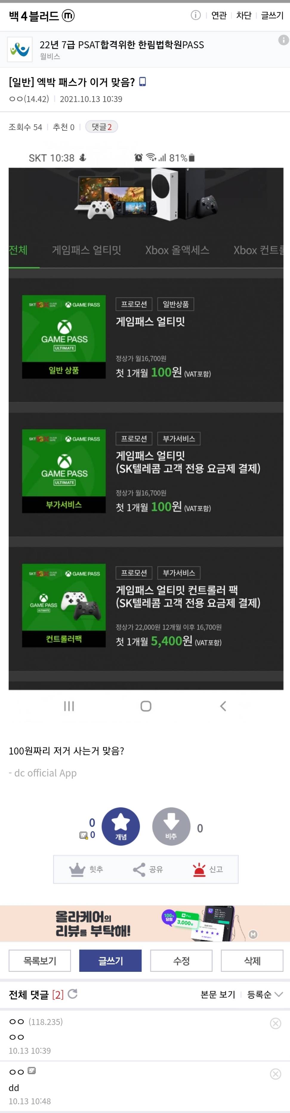 저거 게임패스 얼마내고 얼티밋 적용만 100원이엇던걸로 기억하는데 아닌가 가물가물하네