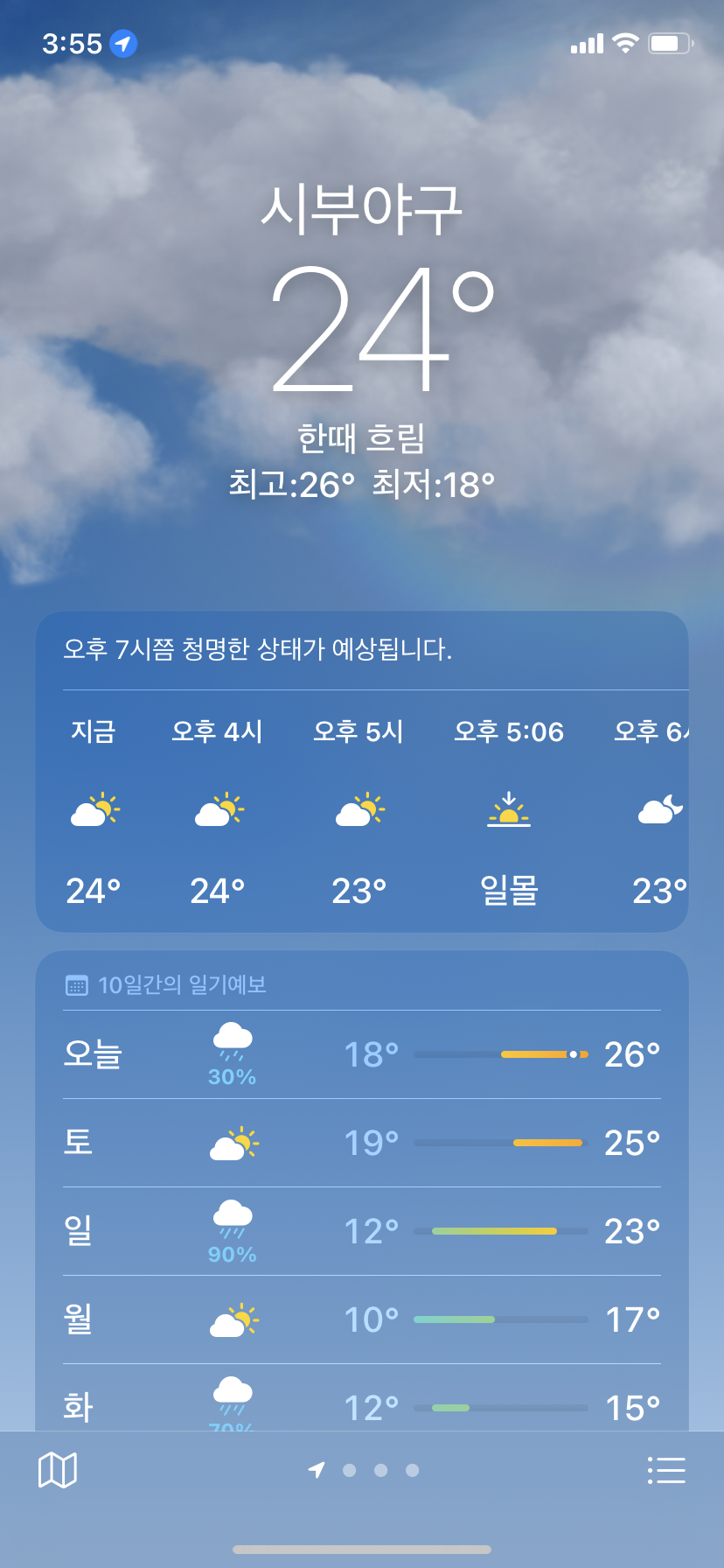 낼저녁에 3도로 떨어짐