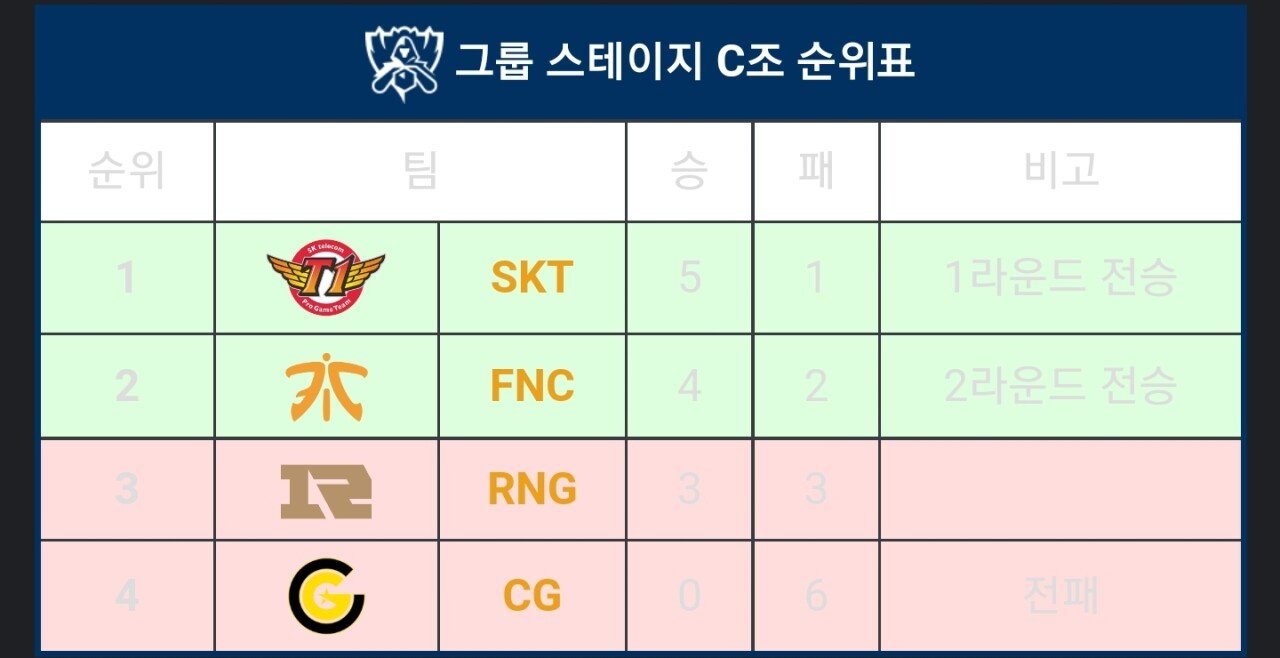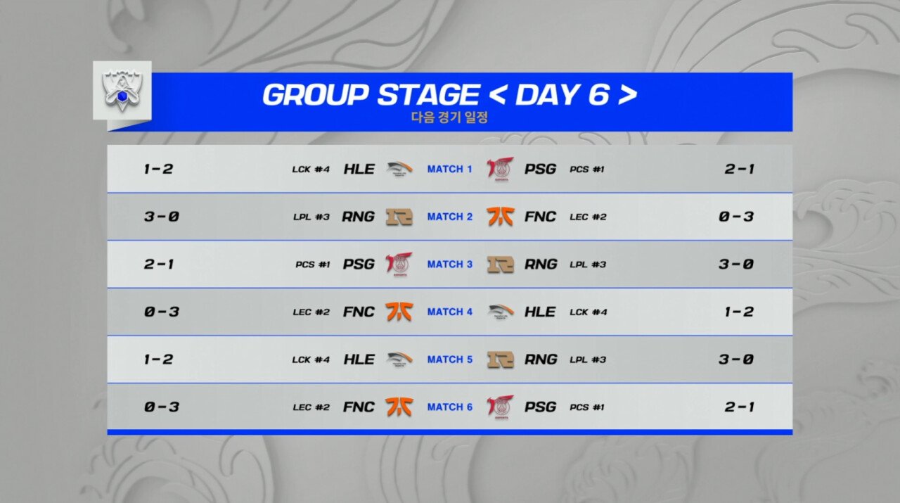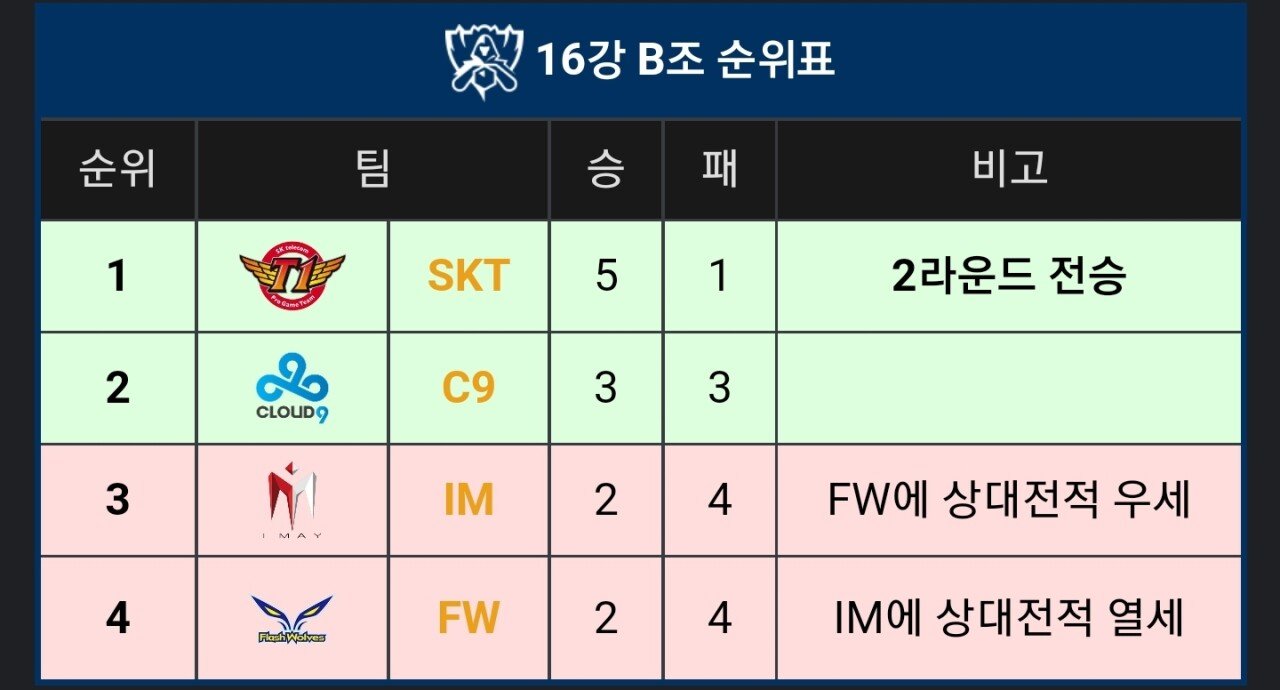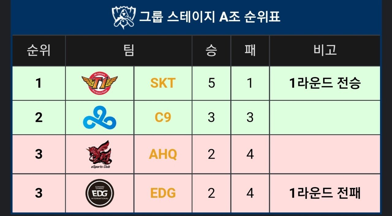 T1이 100도둑의 고추가루로 1위를 하게 되면서 롤드컵 6회 진출 내내 조별리그 1위라는 기록을 달성.