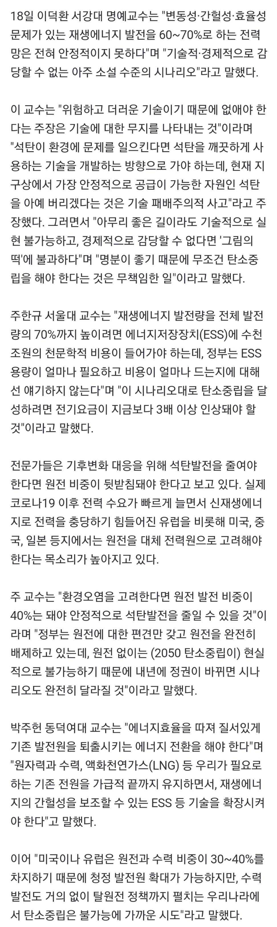 정말 기후적 지리적으로 특수성을가진 케이스를 제외하면 전세계적으로 에너지의 메인스트림은 화력+원자력임 신재생은 끽해야 메인에너지를 보조해줄 서브에너지이고, 그래서 탄소배출권가지고도 EU에서 19년부터 탄소중립에너지정책에 기존 발전방식중 하나인 원자력을 에너지플렌에 넣어야한다했던거고 화성갈끄니까나 빌게이츠, 이번 EU에서도 일단 원전 있어야한다고 하는거임.그린뉴딜이랑 탈원전은 진짜 ㅈ도 아무관계가없는건데 지금여당서 내놓는건 가짜프레임씌우기수준에 불과한거지