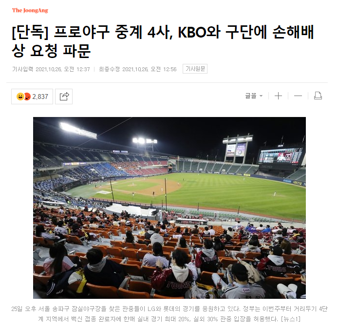 낮경기 더블헤더 늘어서 광고수익 시청률 박살났음