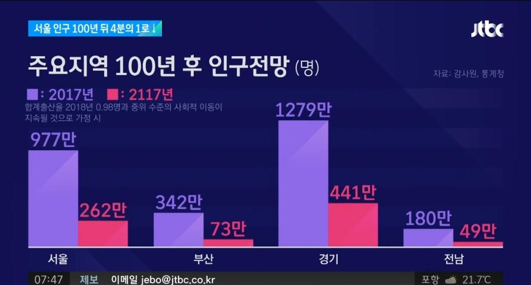 인구가 분산 되는 건 좋은데 인구수 자체가 감소되는 건 굉장히 안 좋지