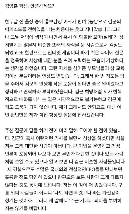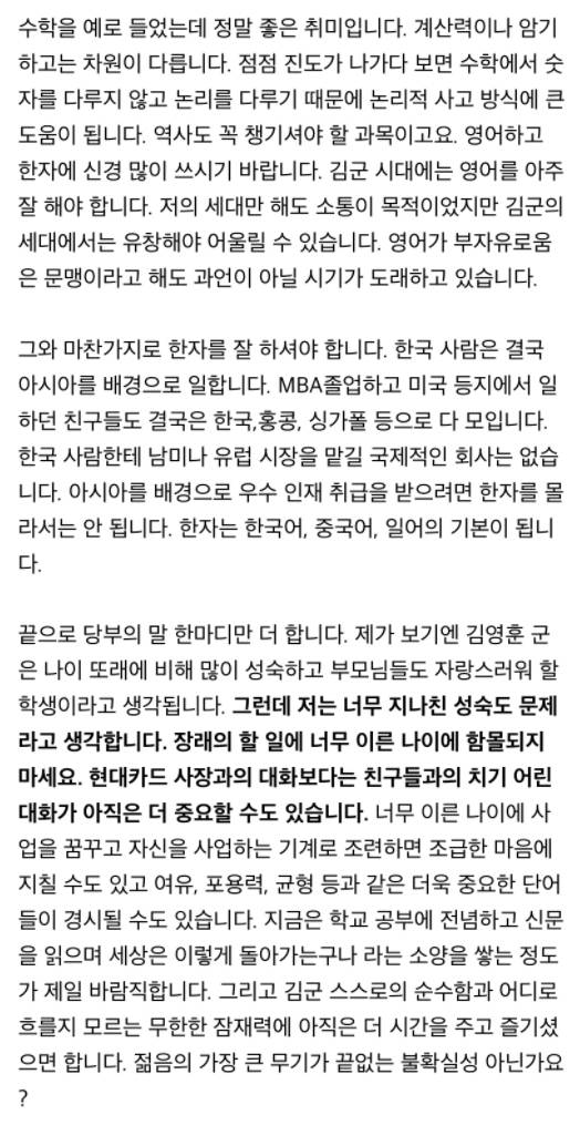 개멋있다 우리 아들한테도 저런 조언 해주셨으면 좋겠다